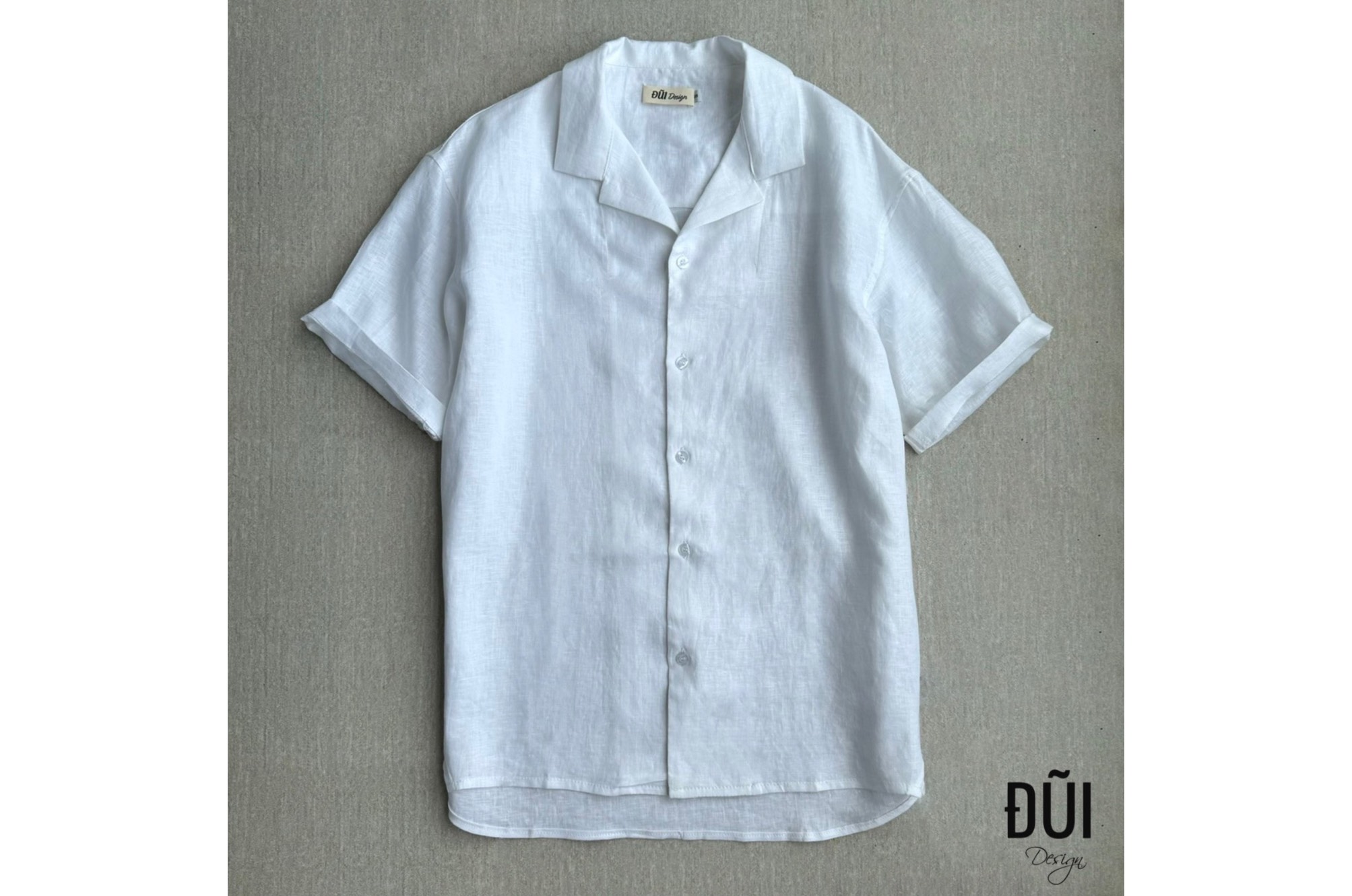 Áo đũi nam cài khuy cổ Hawaii cộc tay trắng