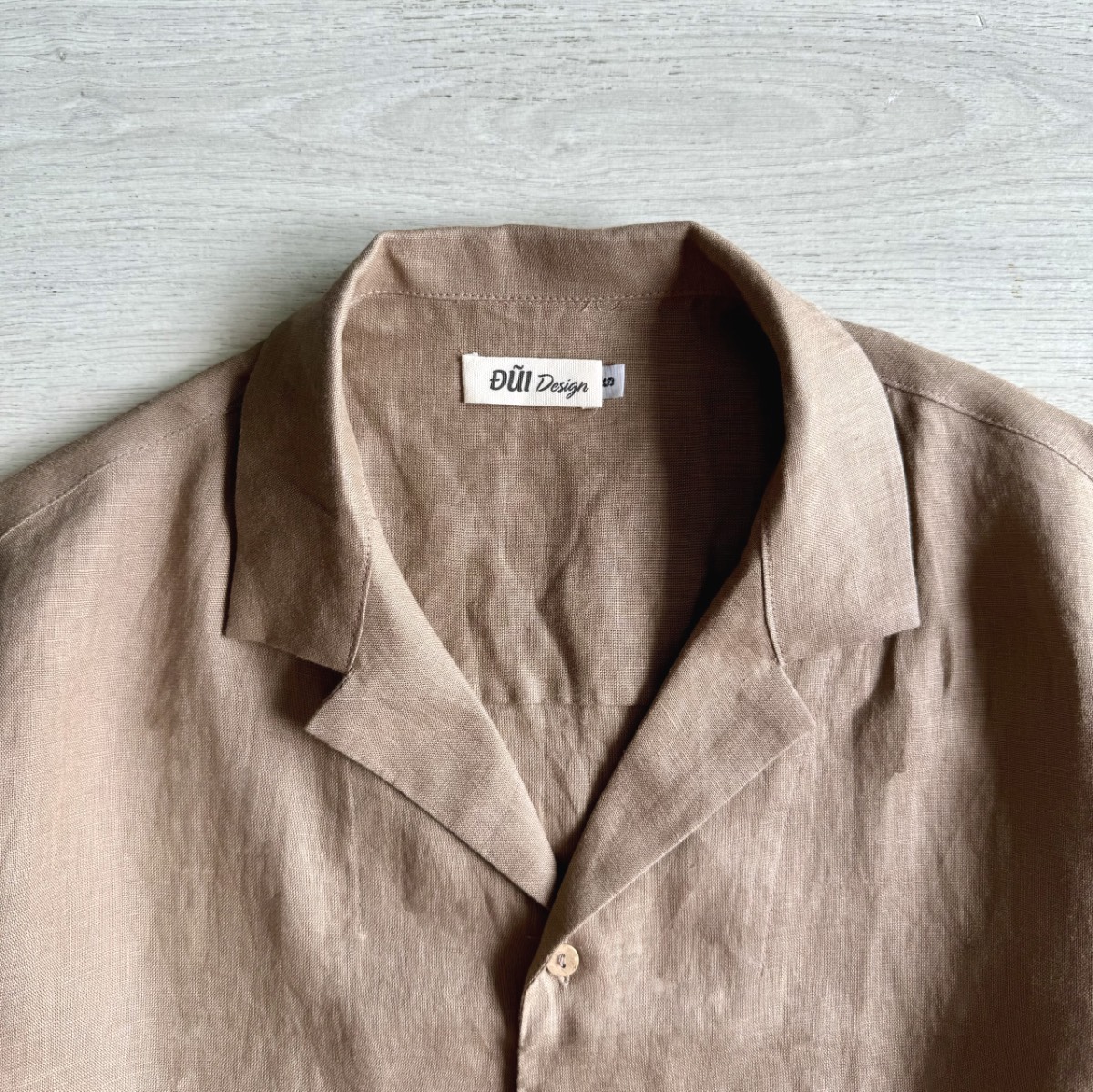 Áo đũi nam cài khuy cổ Hawaii cộc tay nâu